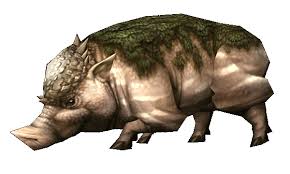 Wild pigs covered in mogg and fungus. Sometimes you will even find mushrooms growing on them. Their meat is known as a delicacy. Though normally docile, they will charge you if angered!